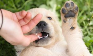 Taking one foot at a time, gently massage and flex his toes. See what’s happening here? You’re teaching him that having his feet handled isn’t an unpleasant experience. Actually, most Golden Retrievers love a good foot massage (Go figure!). You can do this through several daily sessions.